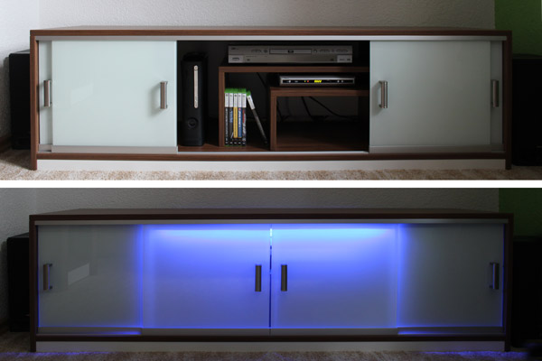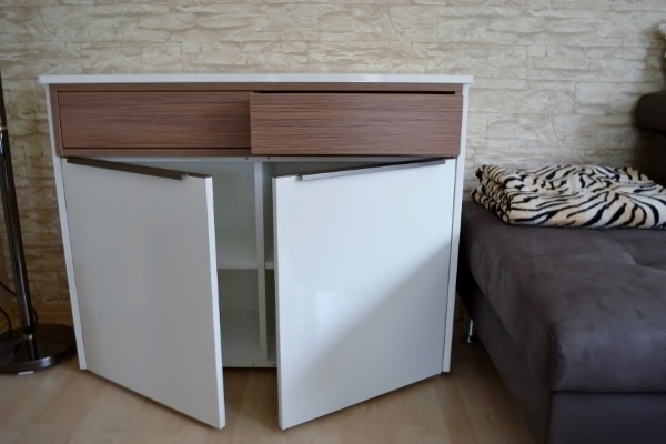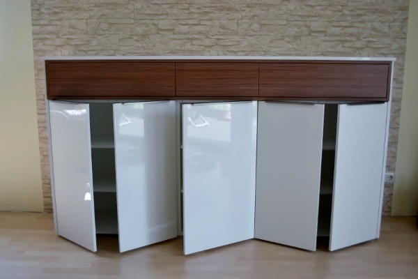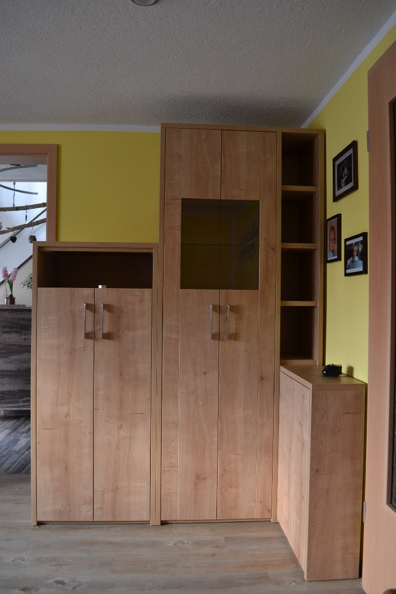 verschiedene Schrankelemente für den Wohnbereich - Türen mit Glaseinsätzen - teilweise Innenraumbeleuchtung der Schränke